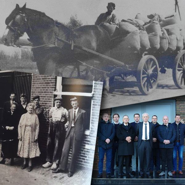 Ons familiebedrijf werd in 1906 opgericht door Helmich Fuite. Als bakker was hij begin 1900 afhankelijk van een plaatselijke windmolen voor zijn meelvoorziening. Ondernemend als hij was, bouwde hij zijn eigen mechanisch aangedreven molen om zelfvoorzienend te zijn. Het eerste diervoeder, wat een bijproduct van zijn molen was, werd al snel de hoofdactiviteit van het bedrijf.